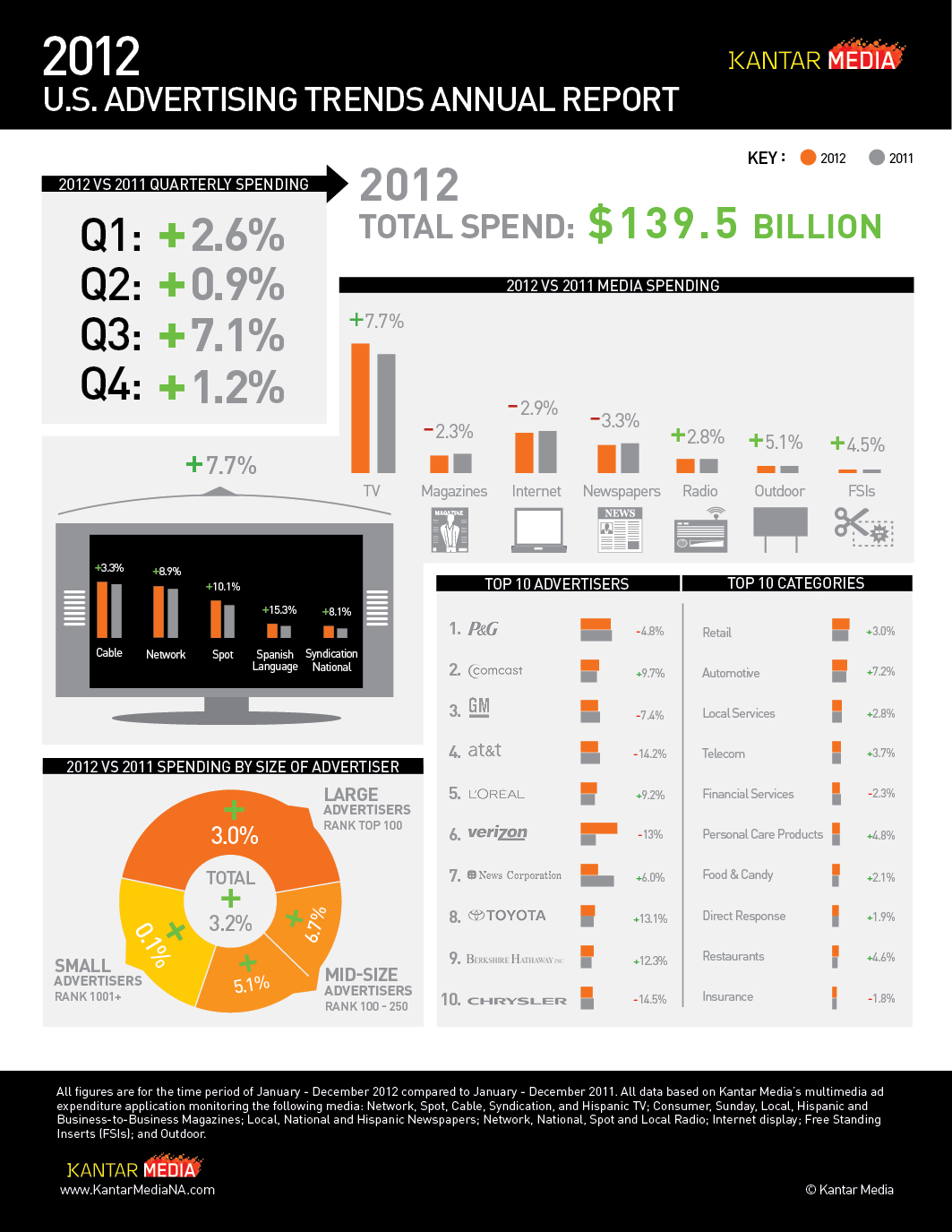 INFOGRAPHIC - U.S. Advertising Year End Trends Report 2012Check out who spent the most on advertising expenditure in 2012 in our latest infographic. View Infographic
