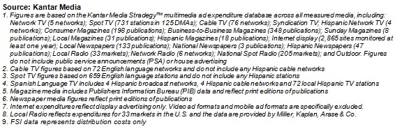 Kantar Media Reports U.S. Advertising Expenditures Increased 0.9 Percent In The Second Quarter Of 2012New York, NY, September 10, 2012 – Total advertising expenditures in the second quarter of 2012 increased 0.9 percent from a year ago and finished the period at $34.4 billion, according to data released today by Kantar Media, the leading provider of strategic advertising and marketing information. Total spending for the first six months of the year grew 1.9 percent to $67.1 billion.